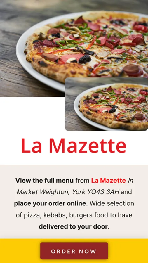 Order food online in Market Weighton! Download our official mobile app and Order DIRECTLY from La Mezette located in 28 High St, Market Weighton YO43 3AH.