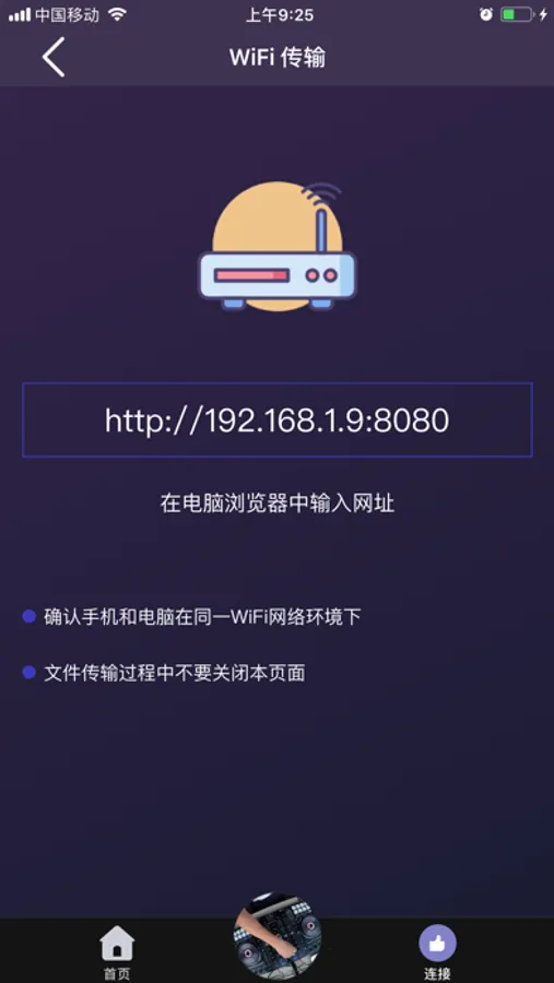 3、支持wifi上传,在电脑浏览器中输入网址,一般为类似于192.168.1.X:8080的网址,然后点击上传文件