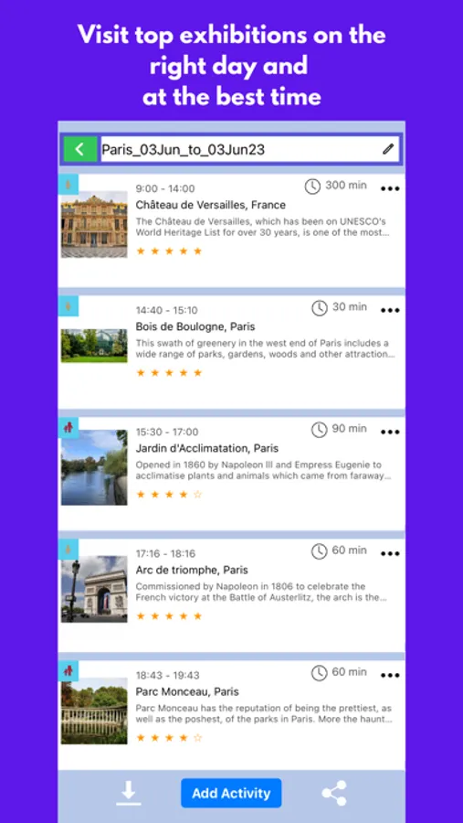 What monuments, museums, churches, castles, cathedrals…should you visit? Not forgetting the hidden gems. Which dates and times are they open or closed? Where are they on the map? Which order should you visit them in? How will you get from one to another? Is it possible to squeeze all of them into your trip? Our app allows you to create your itinerary in an area, between two places, or simply from things nearby. Divento’s magic formula figures all of this out for you. Finally, you can book your tickets, all in one go, with no booking fees.