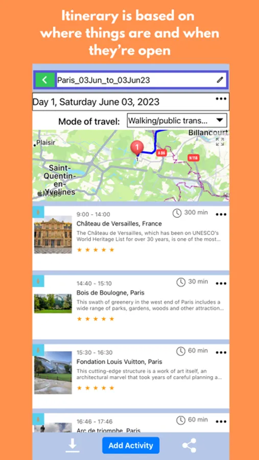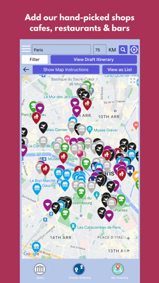 Add our hand-picked cafes, restaurants or shops, to your itinerary. Delete things, spend more time here, or less time there. Download your final itinerary and use it offline, if you like. Or share it with friends. Edit it on the go. Select your activities from a map, or leave us to do the work for you. Choose whether you’re going to go laid back or flat out. You can even decide where, and when, you want to start and end your itinerary…