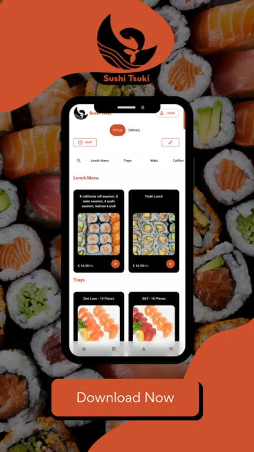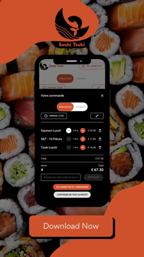 Où que vous soyez, avec l'application Sushi Tsuki, vous pouvez commander sans souci parmi la vaste gamme.
