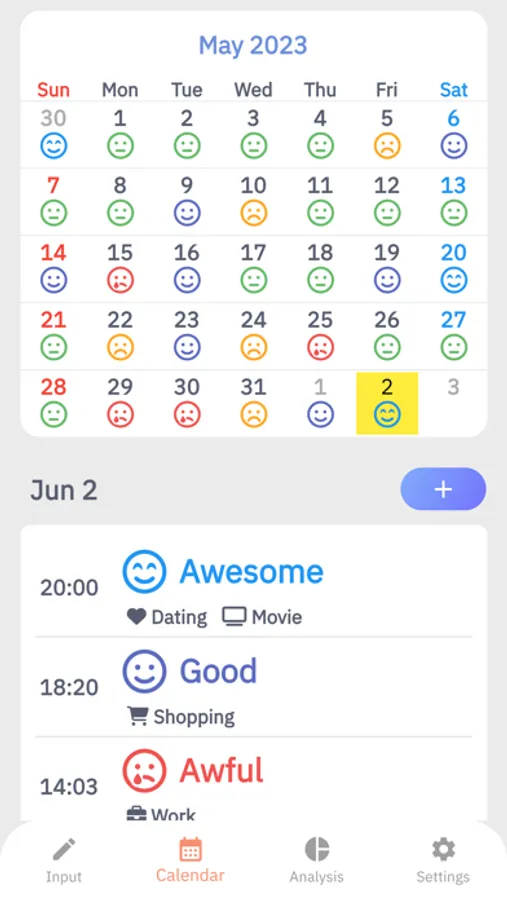 Even if you forget to record your mood, you can add past data from the "History" screen, so there's no need to worry.