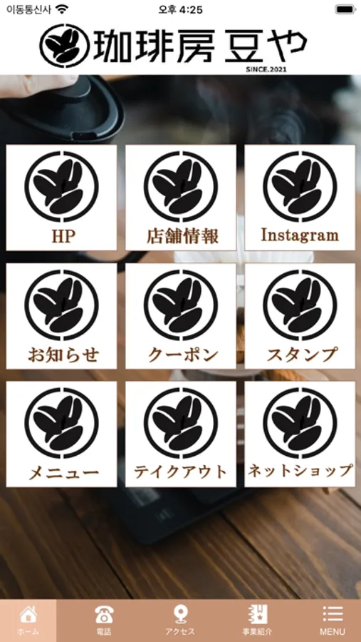 「珈琲房 豆や」公式アプリでは、最新情報やアプリ限定のお得なクーポンを随時配信しています。