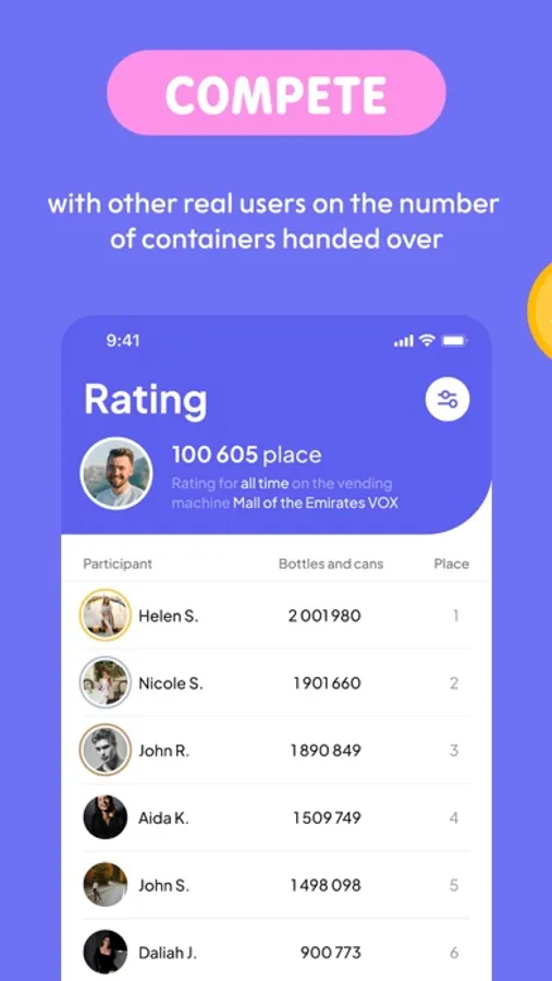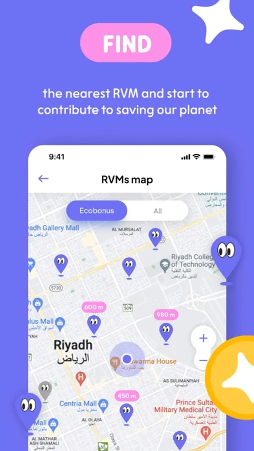 In order to get bonuses, use the RVMs map section in the app, find the nearest RVM and hand over empty plastic bottles or aluminum cans that have accumulated at your home.