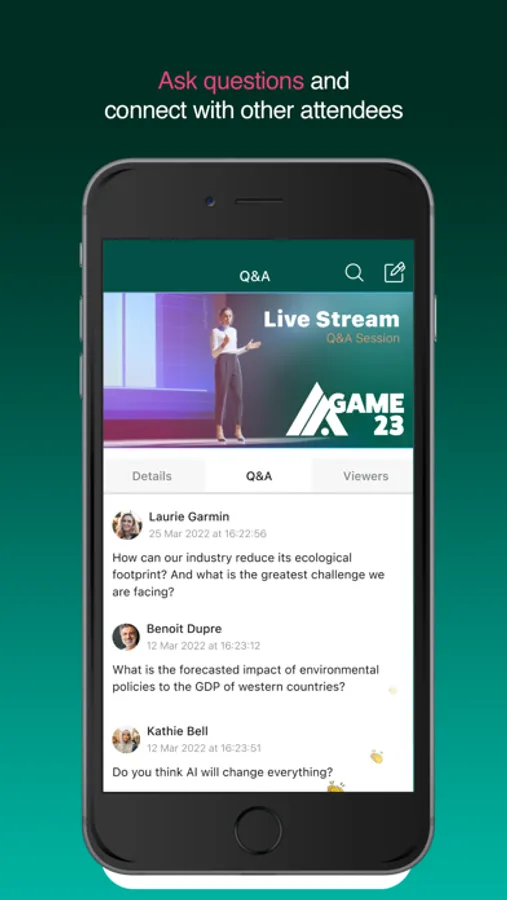 The AGame23 app allows users to participate and interact virtually and will includes the following features: