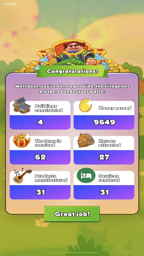 After their epic adventure, travelers and heroes always make their way to the most popular village to celebrate their victorious triumph. Build your own village, chop down trees, collect resources, develop production and attract new heroes. Make your village the most famous and turn it into a township!