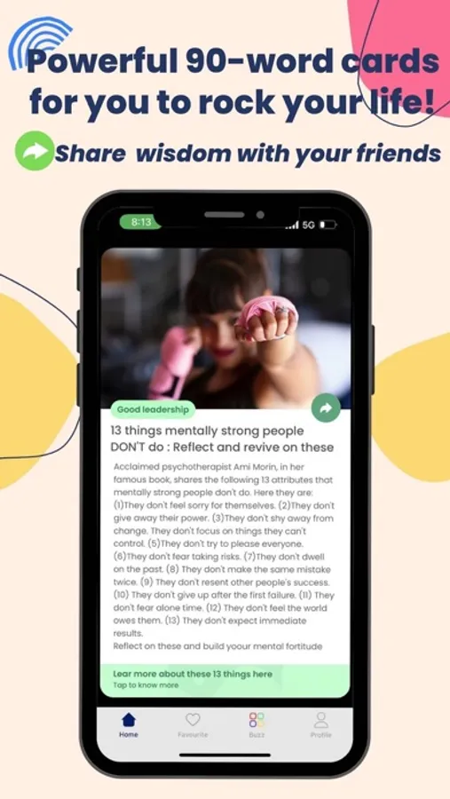 Content: The content regarding productivity, communication, leadership, discipline is presented in the form of cards of 90 words, which are manually researched and curated in such a way that you get the zest of it with in a minute. Th best part of it? You get see what is important to you (based on your interests!)