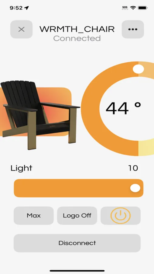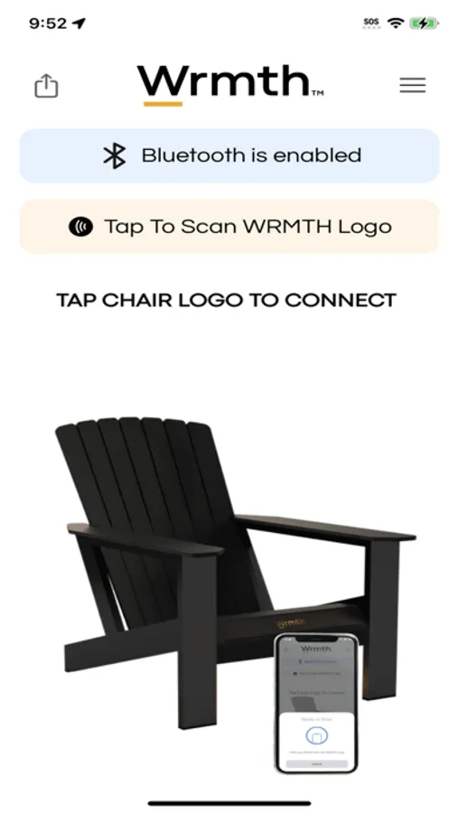 Master control for your Wrmth outdoor living experience. Adjust lighting and heating to personalize your Wrmth smart furniture. It's easy, download the app, hover over the Wrmth logo to connect and you are instantly in control.