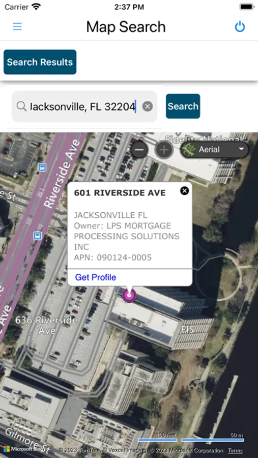 - Search by tapping on any identified parcel boundary on displayed map. Easily pan and zoom to any desired map location.