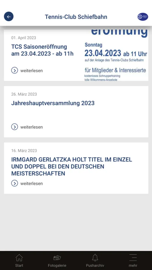 In der Tennis-Club Schiefbahn App findest Du folgende Informationen: