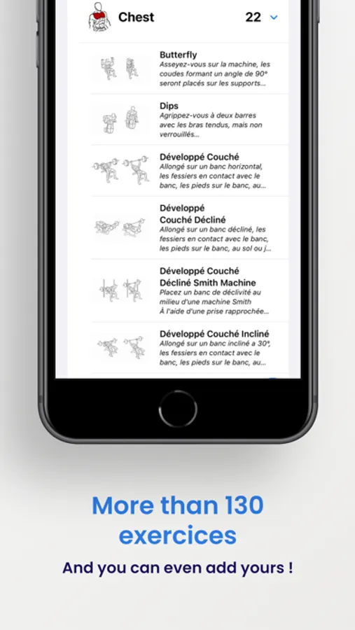• Discover over 130 weightlifting, cardio training, bodyweight, and equipment-free exercises.