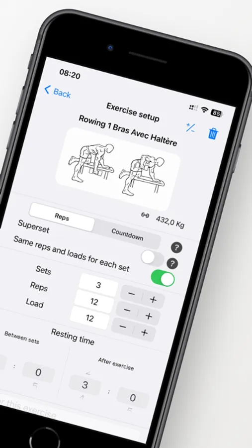 • Choose between countdown or rep-based goals for each exercise based on your preferences.