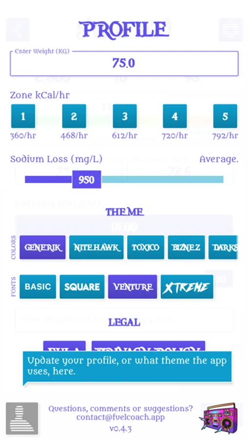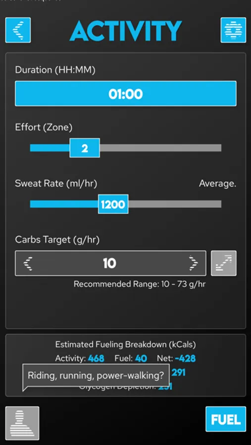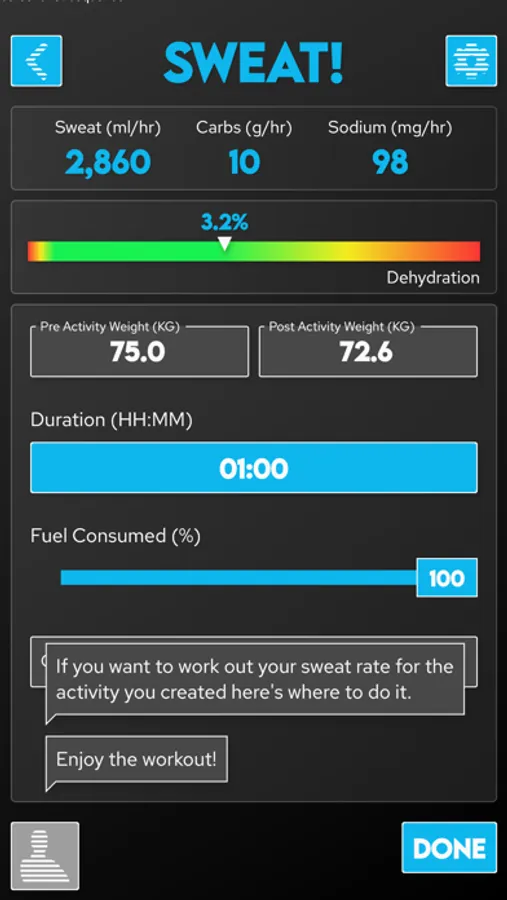 Powered by research from the worlds leading sports scientists, Fuel Coach calculates your individual requirements for carbohydrates, water, and sodium. Tailored to your sweat rate, sodium loss rate, athletic ability, and activity details, these scientifically-backed guidelines will help maximize your athletic performance to reach your full potential.
