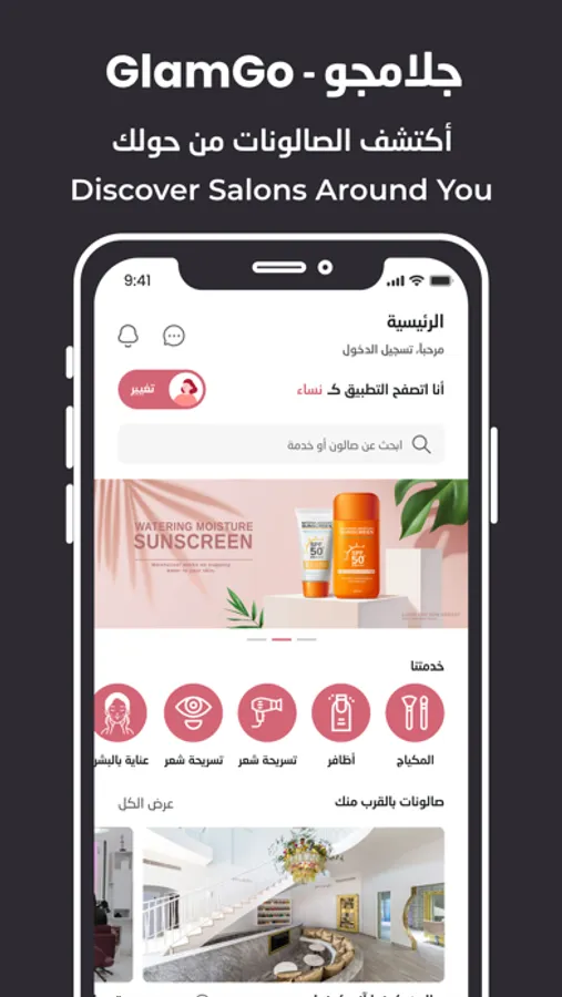 تطبيق جلامجو - GlamGo لخدمة اسهل في الحجز والشراء من الصالونات.
