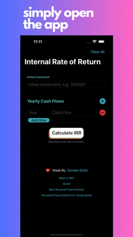 Offline Functionality: No internet connection? No problem! IRR Calculator works offline, allowing you to perform calculations anytime, anywhere, without worrying about connectivity issues.