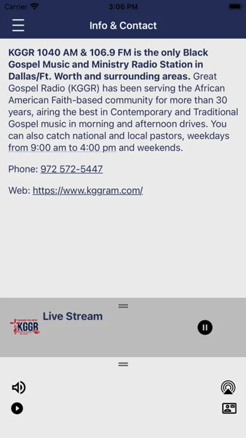 KGGR 1040 AM & 106.9 FM is the only Black Gospel Music and Ministry Radio Station in Dallas/Ft. Worth and surrounding areas. Great Gospel Radio (KGGR) has been serving the African American Faith-based community for more than 30 years, airing the best in Contemporary and Traditional Gospel music in morning and afternoon drives.