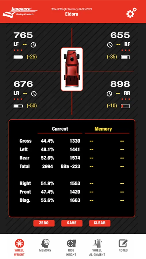 Comprehensive Wheel Weight Display: Longacre Connect allows you to view the four-wheel weights and all partial percentages simultaneously. Whether you require a specific combination of partial percentages or prefer to view them all, this app caters to your needs for any type of racing discipline.