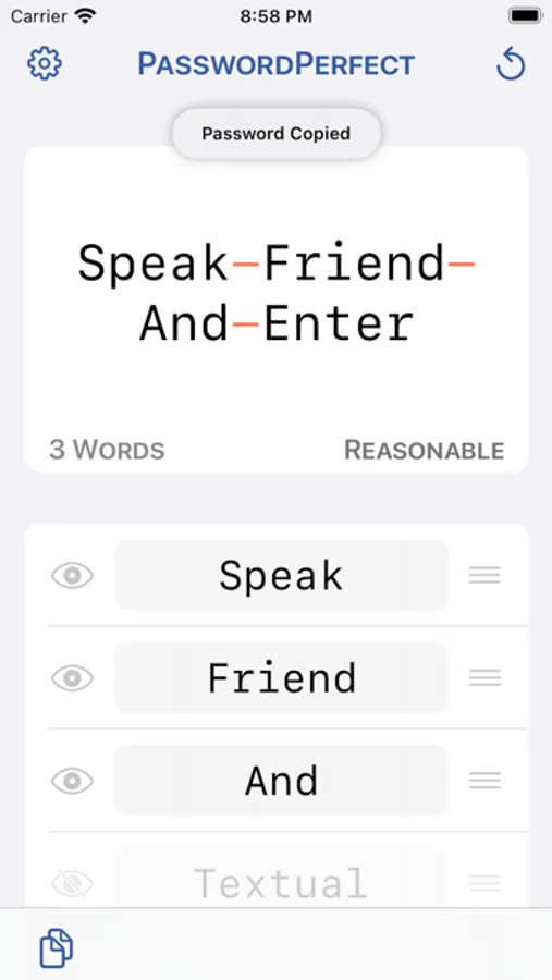 * Instant Copy and Paste: No more hassle switching between apps. Copy your generated passphrase to your clipboard with a simple tap and paste it wherever you need it.