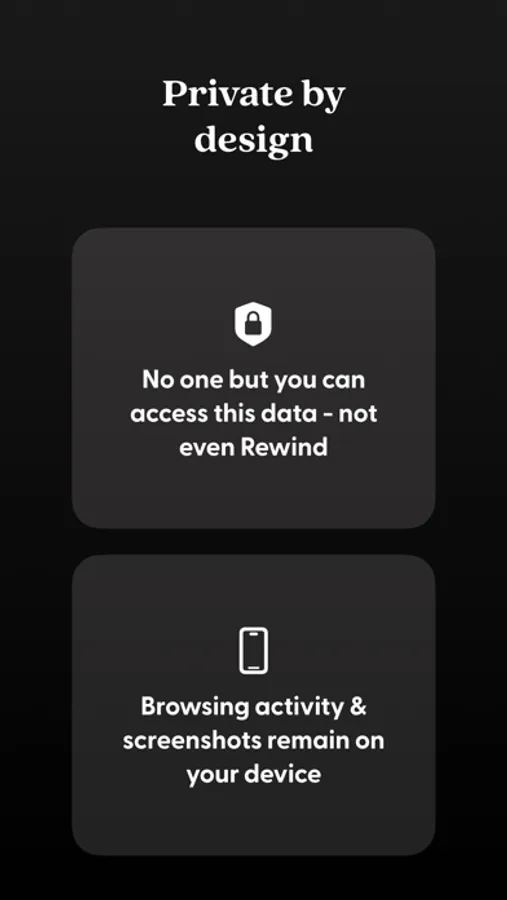 • Private by design: Only you have access to your recordings. All recordings are processed and stored locally on your phone. Private browsing in Safari is not captured.