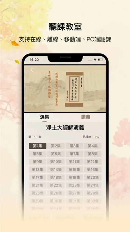 「佛陀教育網路學院」APP,謹遵 淨空老和尚「九年教學」之教誨,課程以網路聽課為主,同學彼此互相討論為輔。教學方法,以一門深入,長時薰修,專注聽經,每個課程結束後要提交一篇學習心得報告,作為修學成績。每年課程完成後,即可升級,進入下一階段的學習。歡迎大眾一起線上共學,互相勉勵,學習不孤單。