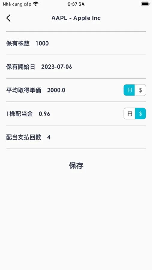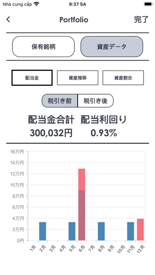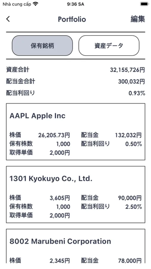 ポートフォリオを作成し、銘柄を検索し、取得単価や取得日を入力することで自動的に配当金情報を取得し、配当利回りを表示します。