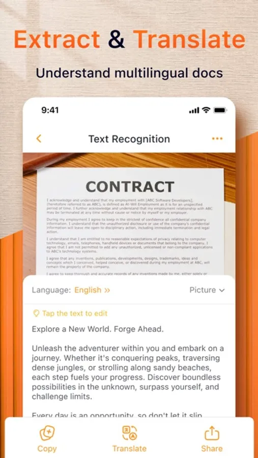 Hold your iPhone over any document to scan and save it as a PDF or JPG quickly. The edges of the document are automatically identified so that only the document itself is scanned. It captures the best possible image in the perfect moment.