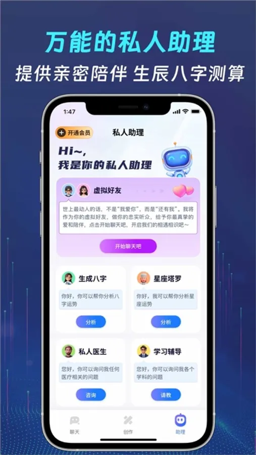 4.私人助理:拥有生辰八字、星座塔罗、私人医生、学习辅导、厨房菜谱等任何你能想到的场景,随叫随到,为你提供更职业的帮助