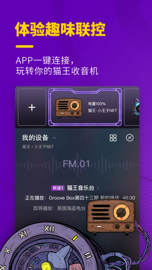猫王音响是中国知名音响设计师曾德钧先生于2015年创立的人文科技音响品牌,其秉持秉持有温度的人文情怀,坚持「听见不同」的品牌理念,致力于在互联网时代让每个人听见独特乐趣。 Muzen Audio is a humanistic and scientific audio brand founded by Mr. Zeng Dejun, a well-known Chinese audio designer,in 2015. Muzen Audio preserves the humanistic feeling of warmth, adheres to the value of "hear the difference" and is committed to ensuring that everyone feels the joy of listening in the Internet age. 猫王音响一直致力于以技术驱动创新,打造全球首创的软硬件一体化音乐便捷收听服务「MuzenLife猫王灵感」。目前,MuzenLife猫王灵感支持猫王音响旗下蓝牙产品的连接与操控和管理,拥有丰富多元的音频内容,满足有关音乐、播客及广播电台的不同收听需求。通过独特的频道交互体验,实现一键开机就能听到喜欢的内容,探索音乐与生活的无限可能。 Simultaneously,Muzen Audio has always been committed to technological innovation, and builds the world's first software and hardware integrated music convenient listening service "OhPlay". At present, OhPlay supports the connection, control and management of all hardware products under Muzen Audio. Also, it includes rich and diverse audio content to meet the different listening needs of music, podcasts and radio. Through the unique channel interaction experience, you can listen to the content you like with one step and explore infinite possibilities about music and life.