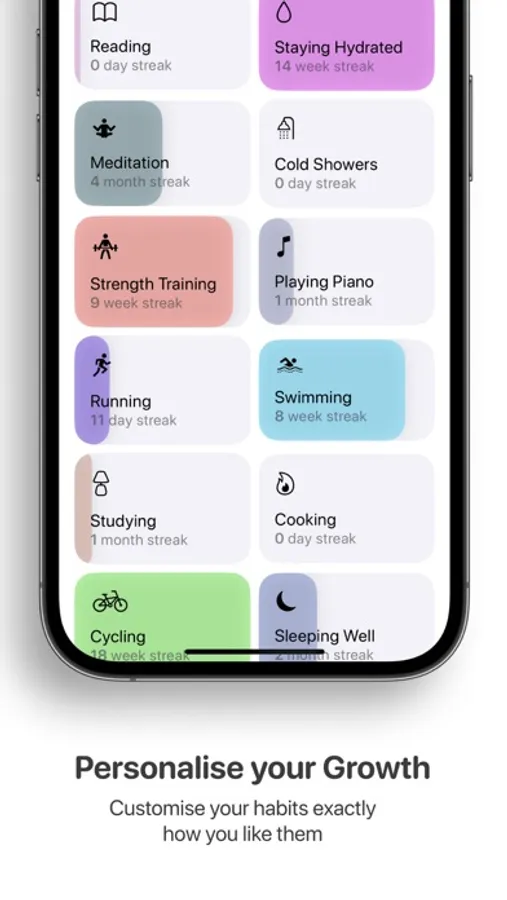 Customise your habits according to your preferences and lifestyle. Whether you want to exercise regularly, read more books, or drink more water, personalise your goals to exactly how you like them.