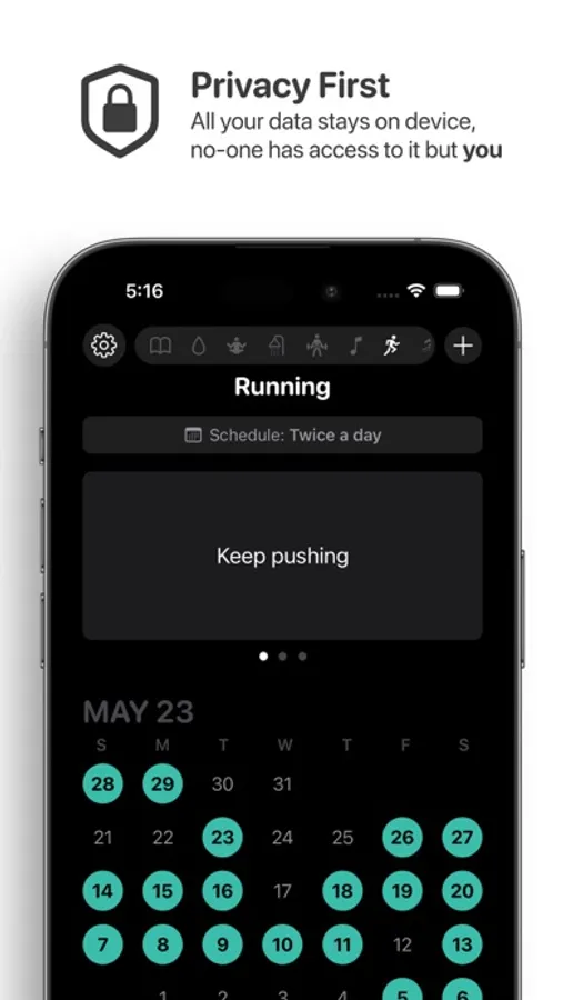 Harnessing the power of consistency and growth, Intent encourages you to approach habit-building in a healthy and human way. No longer stress about missing a day or not reaching your goals – Intent helps you to simply pick yourself up and continue your journey.