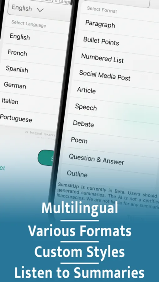 • Learning Made Flexible: Choose the length, from brief overviews to detailed analyses, and the style – be it academic, casual, or even child-friendly. SumsItUp adapts to your learning preferences.