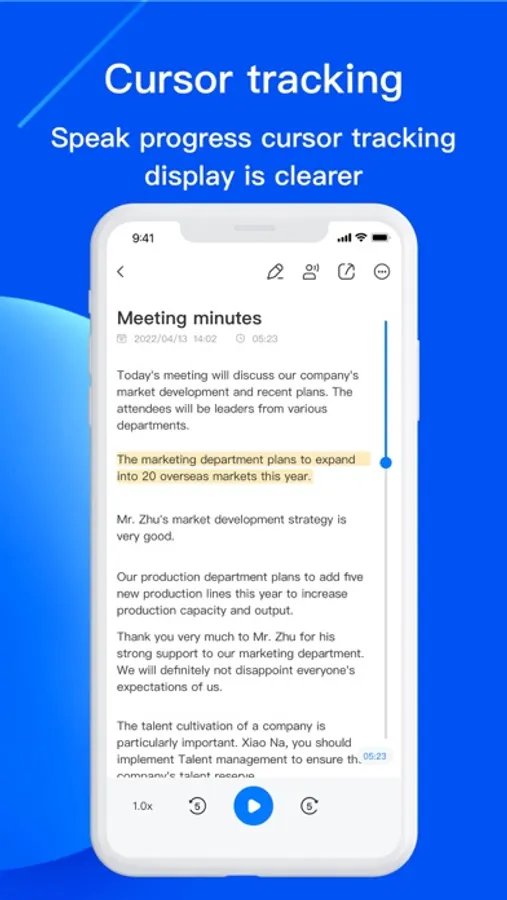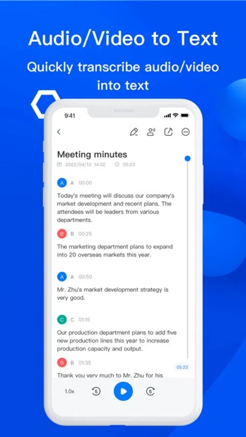 Adopting the latest AI recording recognition technology, it can quickly and accurately convert audio/video files into documents. You will be able to easily record meeting notes and ideas, eliminating the tedious manual typing process and allowing you to focus more on meeting content.
