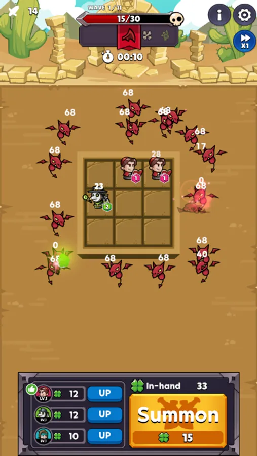 - Place and upgrade heroes according to the monsters appearing in each wave and achieve victory in battle!