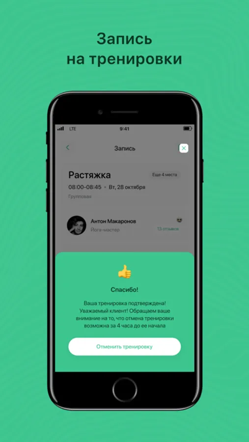 Получать PUSH-уведомления о предстоящей тренировке за 3 часа;