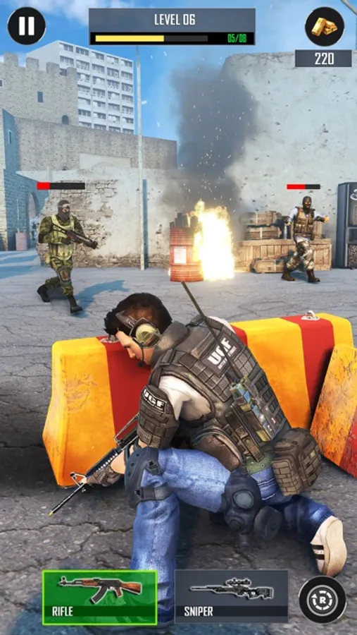 Here is the new challenging tps commando action shooting game 2022 for you. In this commando gun strike shooting game, you have to beat the enemy with a different strategy to win the fps gun shooting ops game offline. This fps gun strike game 3d is very easy to play yet challenging to win the level. You just have to move the crosshair with your finger to move the commando action gun strike ops shooting game offline and aim properly at the enemy to win gun special ops strike mission games. To win this commando action gun strike ops shooting game offline, try to beat your enemy through this method you will be able to beat them easily as compared to taking a shot somewhere. In commando action gun ops shooting games, you need to hide behind the boxes in order to save yourself from the firing and grenades in gun strike ops shooter games.