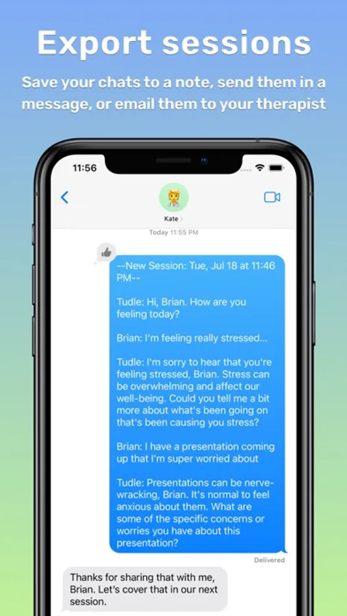 4.) Privacy and Confidentiality: We understand the importance of privacy when it comes to therapy. Rest assured that your data and interactions within the app are kept strictly confidential, providing a secure and safe environment for your personal growth. Conversations are not stored on any of our servers.