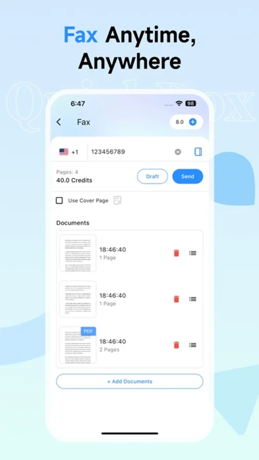 QuickDox transcends traditional boundaries with its online fax service, enabling you to send faxes anywhere, anytime, thereby accelerating your workflow. To safeguard your document security, it includes a one-tap PDF encryption feature, minimizing the risk of information leaks.