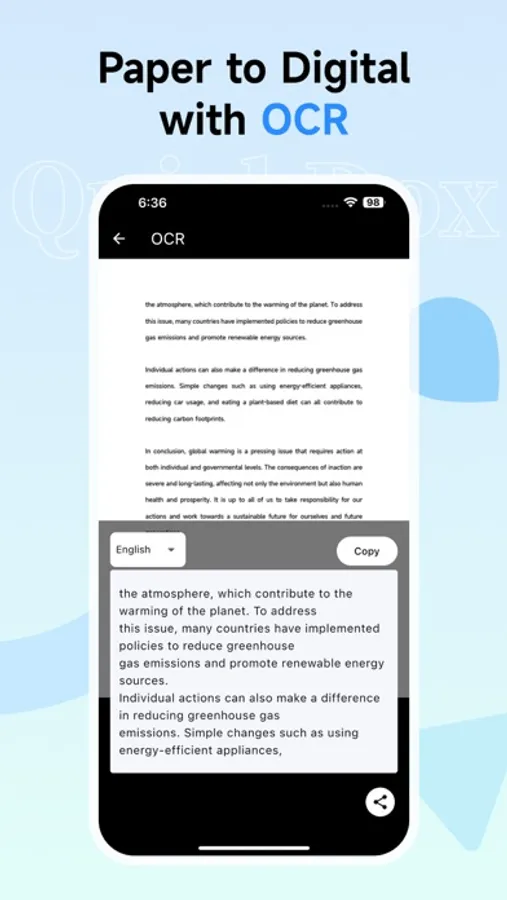 OCR Text Recognition: Effortlessly scan paper documents or photos into electronic files, copy and store their content, saving your manual input time.