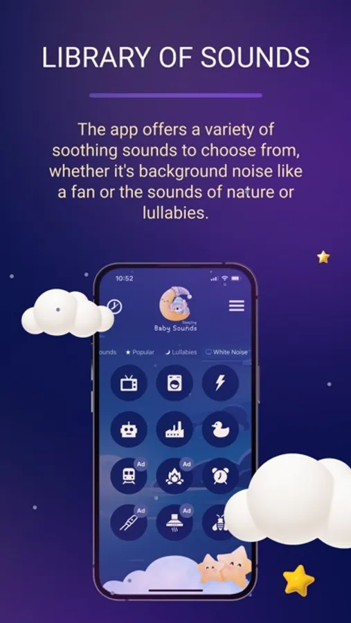 - Extensive library of sounds: Nature, devices, lullabies, and more.