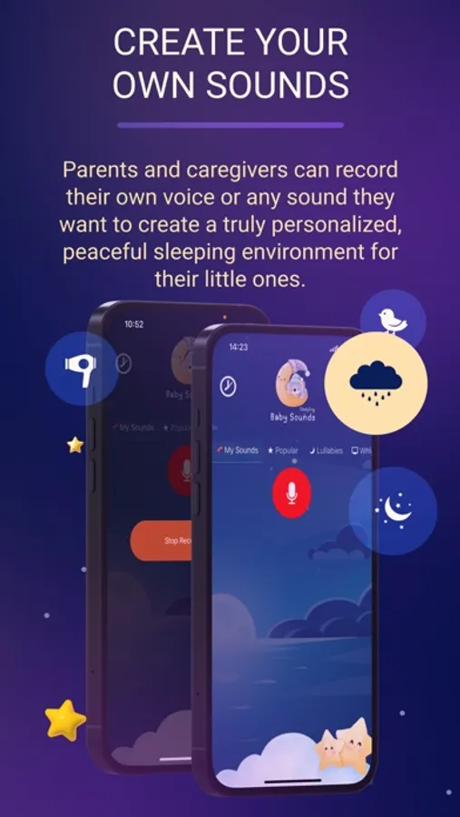 Create a serene and comforting sleep environment for your little ones with Baby Sleeping Sounds. This essential mobile app offers a library of high-quality sounds, calming nature sounds, rhythmic sounds of home appliances, and lullabies. Mix and match sounds and adjust volumes to effortlessly customize your child's sleep experience. Designed with an intuitive interface, Baby Sleeping Sounds is perfect for use at home or on the go. Whether you're a new parent, a working parent, or in need of a consistent sleep routine, this app is your go-to app for peaceful nights.