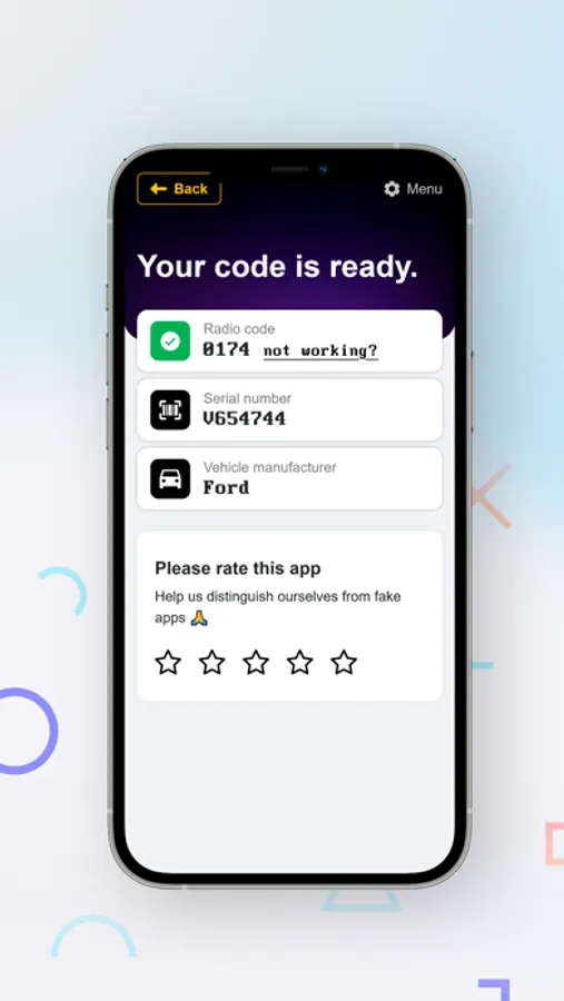 Had a power outage (changed or dead battery, changed alternator or fuses), and now the radio is asking for the code? That happens often, but you have found the right solution. Using the serial number you can find on the radio's display or rear label, you can calculate your Ford radio code in seconds. This application is instant and free of cost.