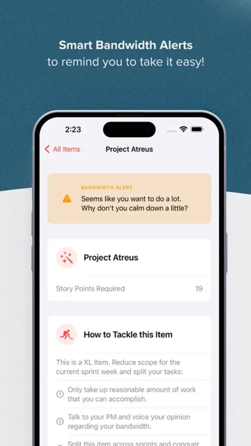 Create any project and based on the size, story point estimate and task at hand, Atreus Engine will give you an updated estimate on how much it will take to complete a task! No more burnouts, just hassle-free work planning!