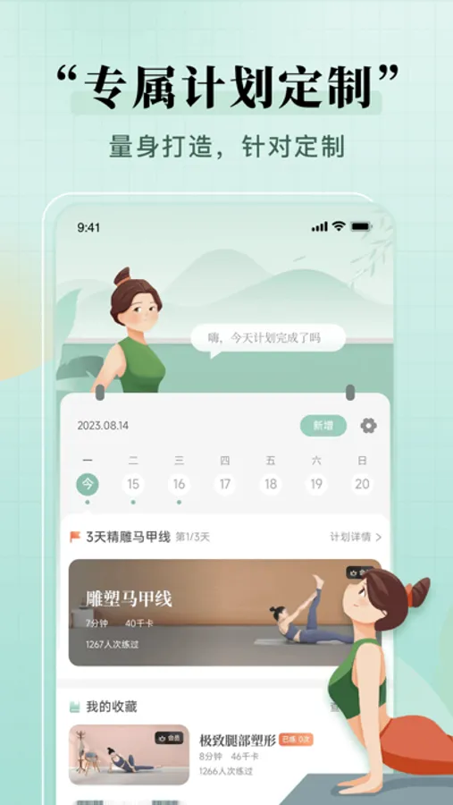 1、专属计划制订:通过收集你基本信息和瑜伽目标从而为你量身打造一套瑜伽练习计划,在你完成本次计划后生成计划报告。