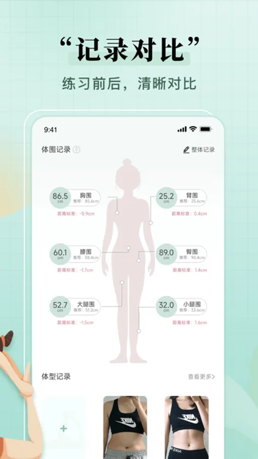 6、推荐身材指数:通过你填写的信息为你计算出推荐的身材指数,助你明确目标,练习更精准。