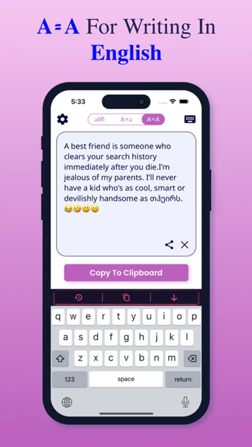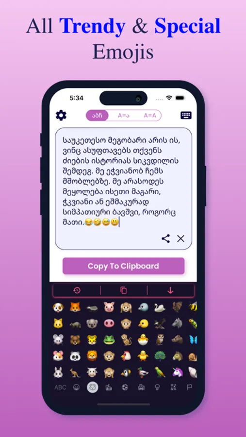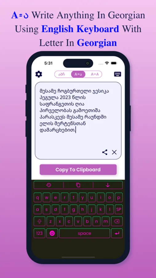 Introducing the Georgian Keyboard App - the ultimate tool for typing in Georgian effortlessly! Enhance your communication experience and express yourself in your native language with ease. Whether you're writing emails, sending messages, or updating your social media posts, our Georgian Keyboard App is here to make your typing experience seamless and enjoyable.