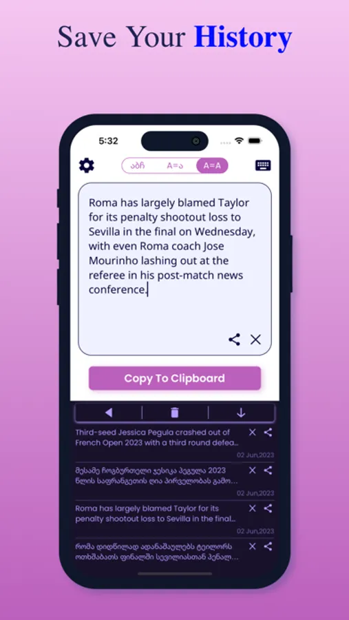 2. You can save your Georgian text inside application it self. You can use your text for later use too.