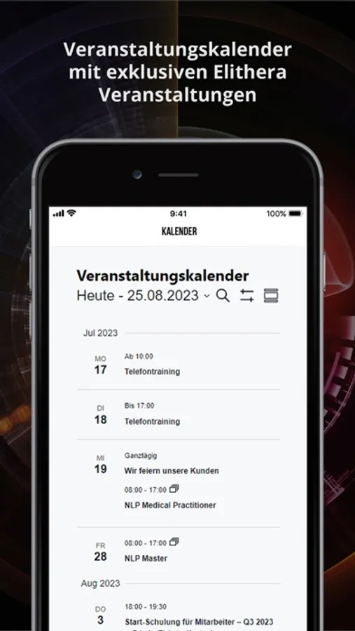 Im Veranstaltungskalender kannst Du Dich direkt zu allen Elithera internen Veranstaltungen anmelden. Ob zu unseren bundesweiten Regionaltreffen, Online-Austauschtreffen oder unserer jährlichen Erfa-Tagung mit allen Elithera-Partnern – hier hast Du alles im Blick, mit Anmeldung per Klick.