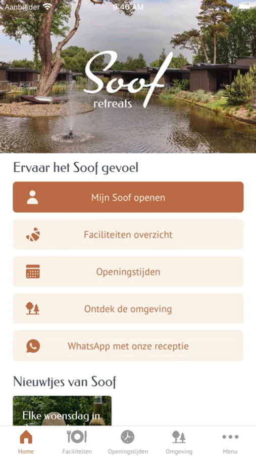 De app van Soof Retreats biedt allerlei handige informatie tijdens u verblijf. Op zoek naar actuele openingstijden, het recreatieprogramma en informatie over het park en omgeving? Het is allemaal te vinden in de Soof Retreats App