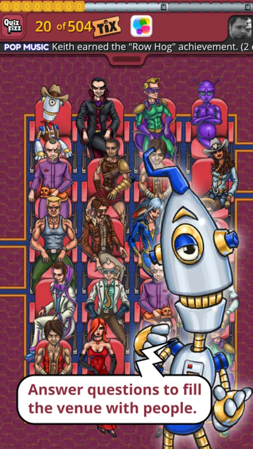 Unique, fun and rewarding trivia gameplay: answer questions to win Tix and build an audience.
