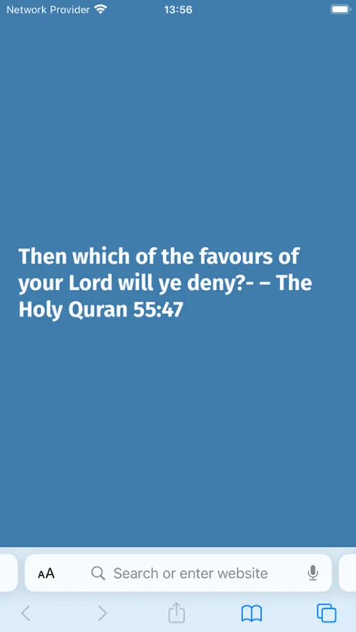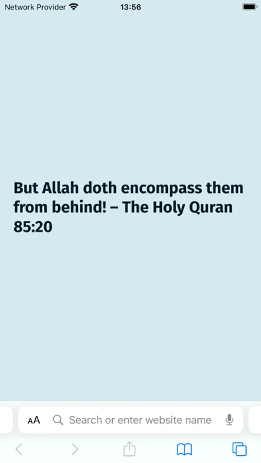 With Quran Tab, you can embark on a journey of self-reflection and enlightenment with ease. Each time you open a new tab in Safari, a carefully selected quote or Surah will greet you, presented in a large, legible font that ensures a comfortable reading experience. The quotes are sourced from the revered English translation by Yusuf Ali, offering you a profound understanding of the Holy Quran's timeless wisdom.